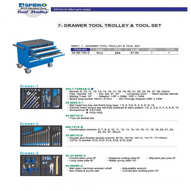 Carro Herramientas 5 bandejas 104 piezas azul